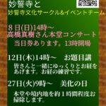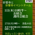 また、「妙誓寺バザー」「妙誓寺文化祭」などの楽しいイベントや、文化サークルとして「ヨガレッスン」も行っております。