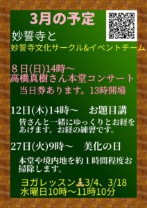 お知らせ2026年3月1日令和08年3月の聖語